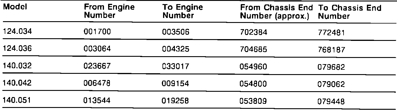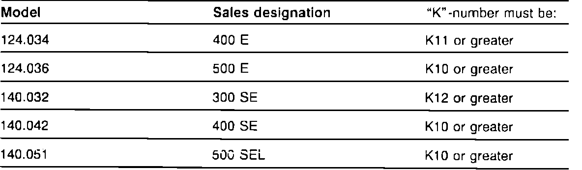 Vehicles that are in for service should be checked to determine if the new control module has been installed. If not, the new module should be installed according to the following chart. Customers whose vehicles are not scheduled for service in the very near future should be contacted and asked to bring their vehicles in specifically for this purpose.