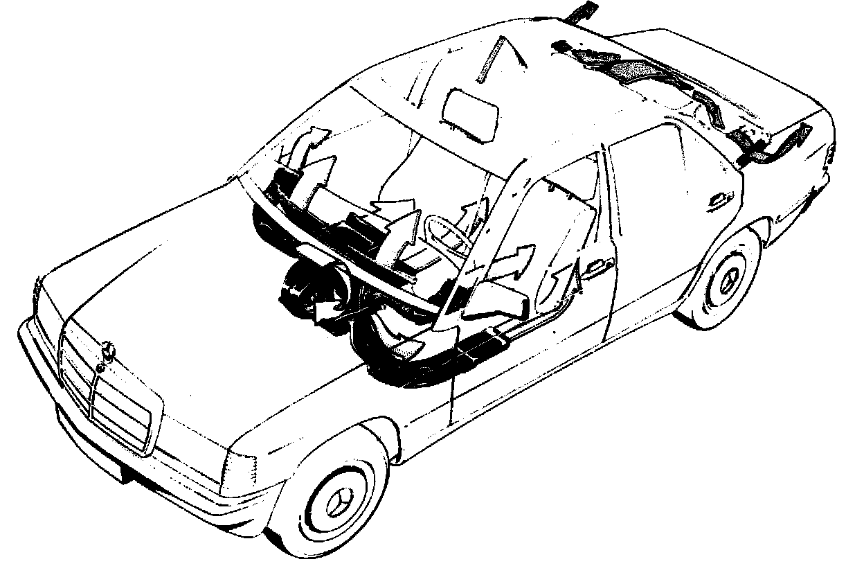 The air enters at air intake grille below windshield and flows via blower into vehicle interior. The main air flap is located between blower and heater box. As a result, the supply can be centrally closed in the event of dust and unpleasant odors from outside.