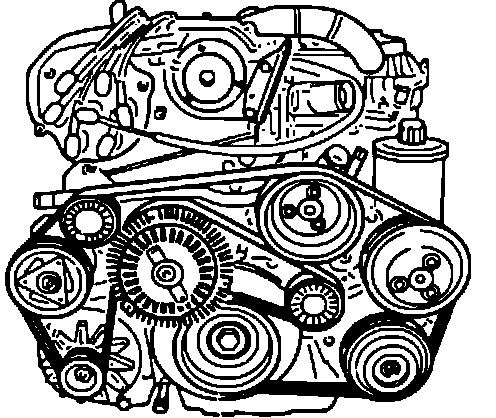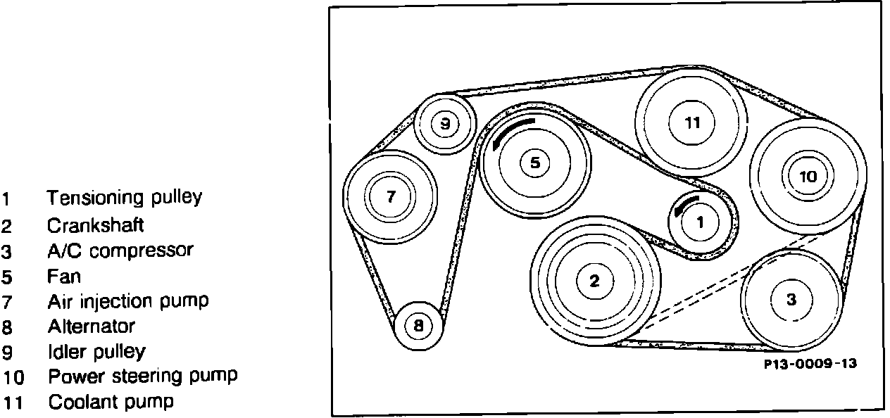 4. Loosen tensioning device at nut (5) by turning nut to the left until the serpentine (poly V-belt) belt can be removed.