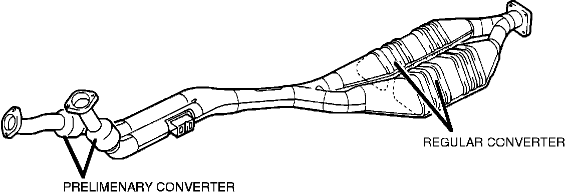 The catalytic converters (two preliminary and two regular) are located undercar center of vehicle.