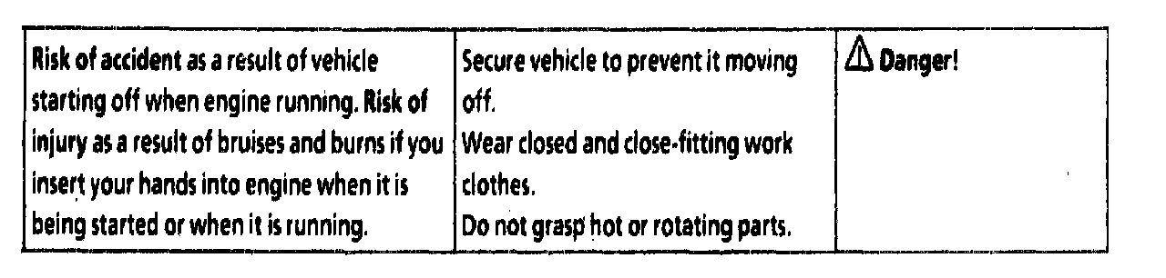 - As a general rule, carry out work on the running engine only if this is absolutely essential.