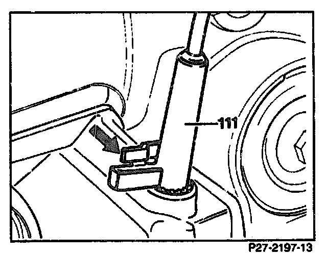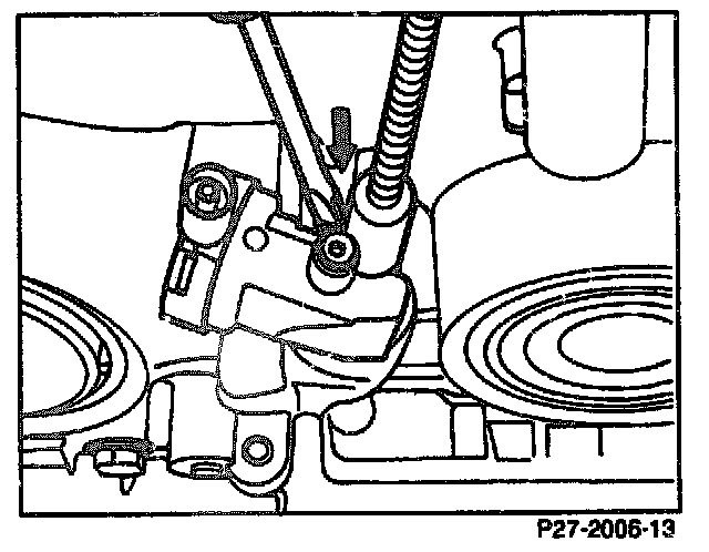 Remove control pressure cable by pressing tab (arrow) towards the sleeve (111), turning 90° counter-clockwise and pulling upwards. Detach connecting rod.