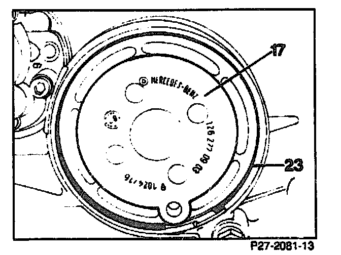 11. Press in brake band piston cover B2 (17) and remove retaining ring (23), take off brake band piston cover.