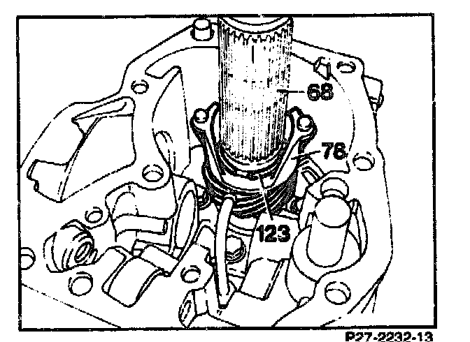 32. Remove snap ring (123) from input shaft (68) and take out helical gear (78)