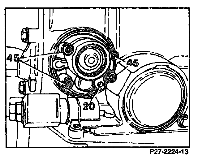 Remove, install. hexagon socket bolts (45), 8 Nm. Take off O-ring (22) and intermediate plate (21).