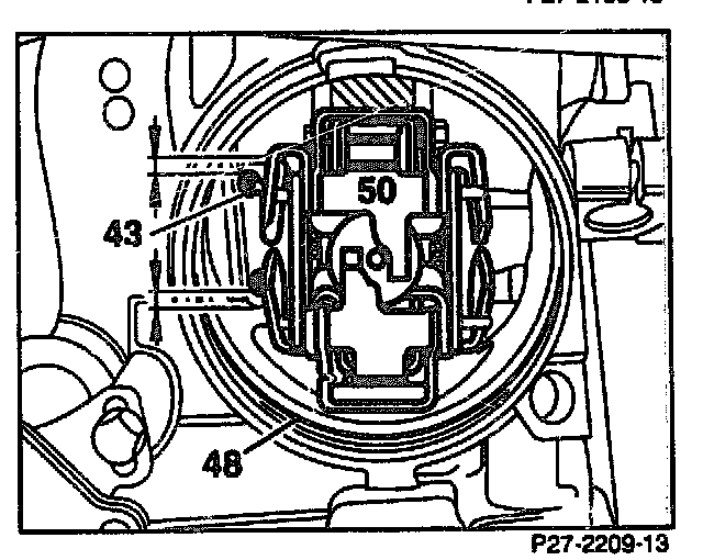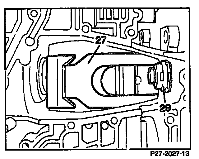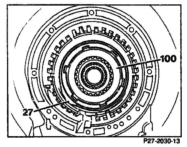49. Position brake band B2 (27) at an angle, press together and take out.