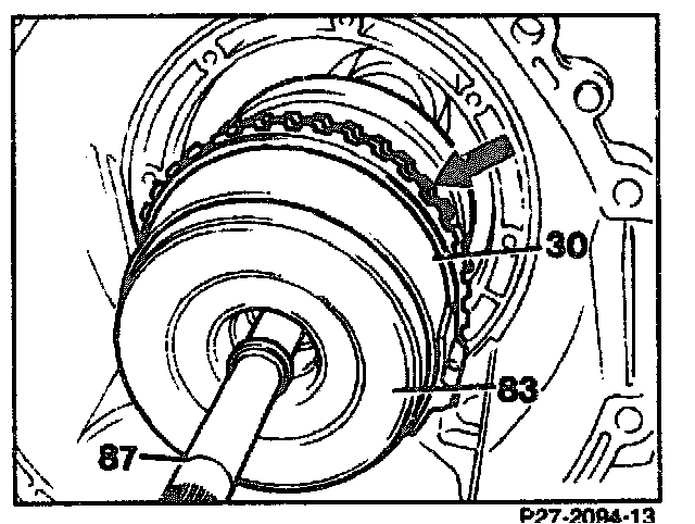 42. Pull clutch K1 (83) together with brake band B1 (30) off the gear set.