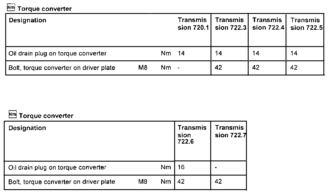 Torque Converter Torque Specifications: