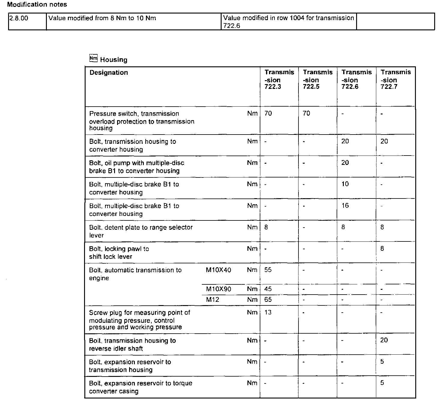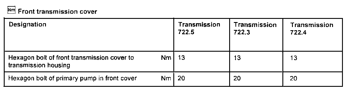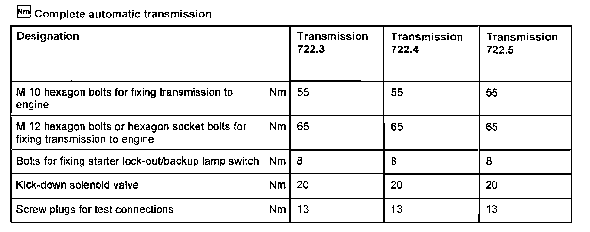 Transmission Torque Specifications: