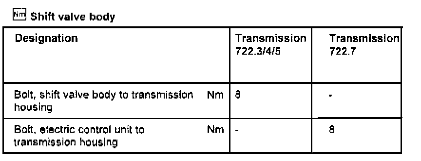 Shift Valve Body Torque Specifications: