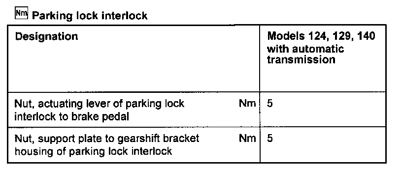 Park Interlock Torque Specifications: