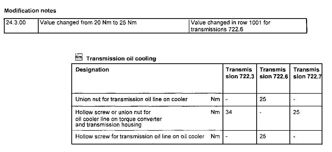 Transmission Oil Cooler Lines Torque Specifications: