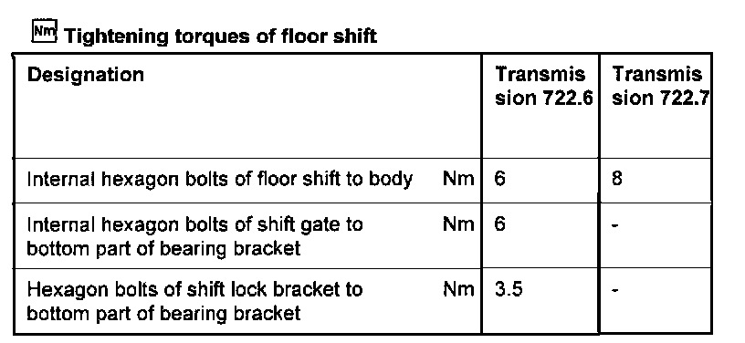 Floor Shift Torque Specifications: