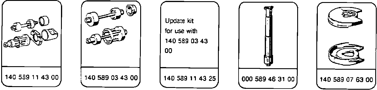 Use either the new special tool 140 589 11 43 00 by itself or previous tool 140 589 03 43 00 together with update kit 140 589 11 43 25.