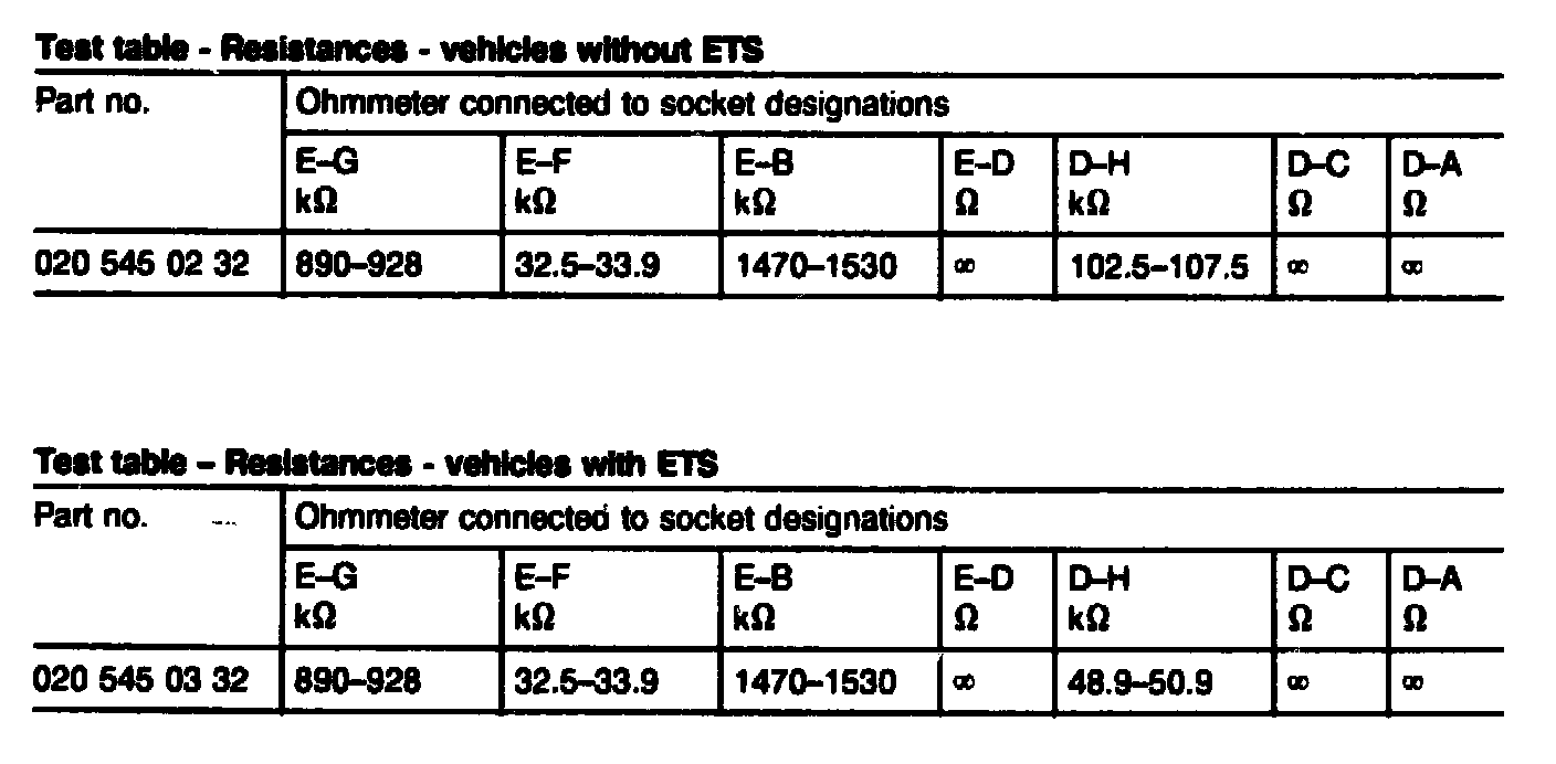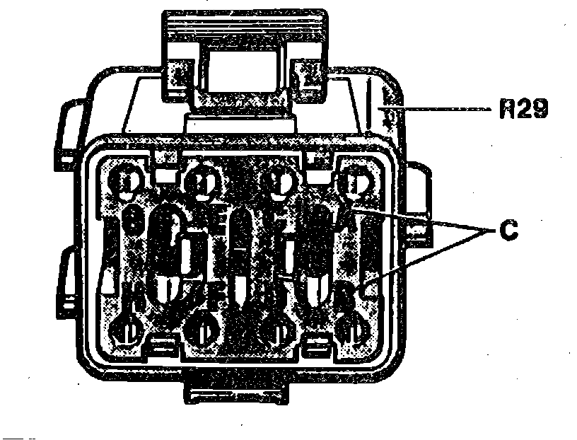 - Check resistances (refer to table), if resistances deviate from specified range, replace cruise control reference resistor (R29)