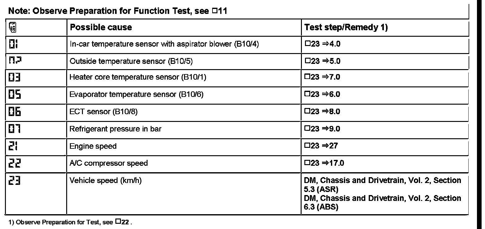 Reading Actual Values (via A/C Pushbutton Control Module [N22])