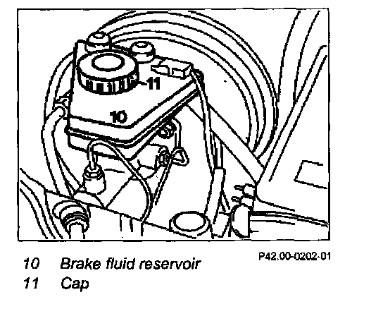 2 Unscrew cap (11) of brake fluid reservoir (10)