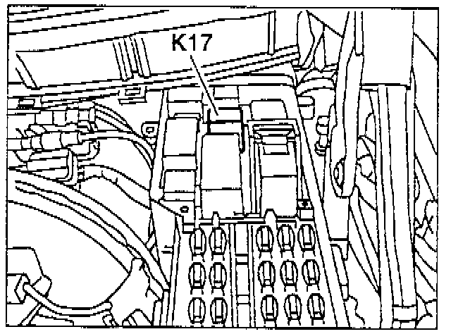 1. Remove previous version (prior to 21.10.93 production) secondary air injection relay module (K17, Figure 1) from fuse box.