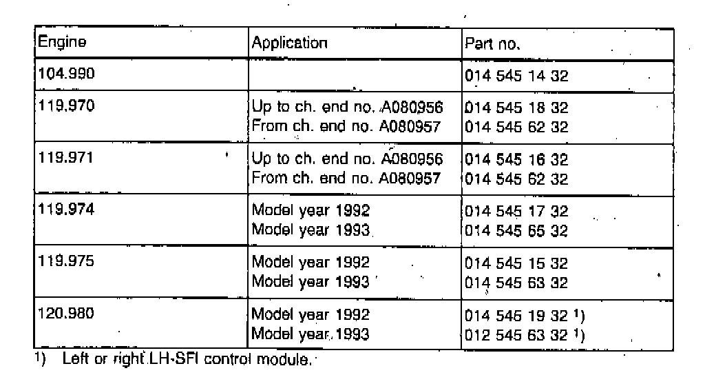 3) Replace LH-SFI control module with version listed in parts information table below.