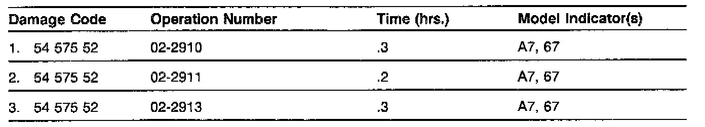 ^ For other related repairs, refer to the latest Warranty Time Guide and submit separately. Operation No. 02-2910 must not be used when claiming related repairs.