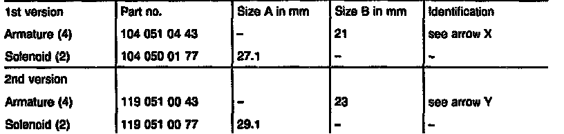CAUTION: For operational reasons, the different versions of the armature (4) and of the solenoid (2) must only be installed in the specified combination (see table below for matching).