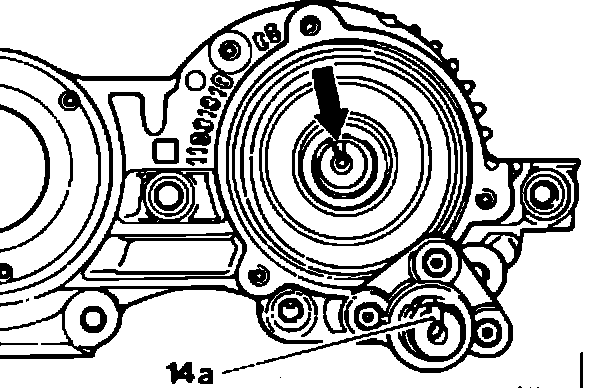 8. Install in reverse manner. Pay attention to locating pin (arrow) and follower groove (14a) when installing the rotor.
