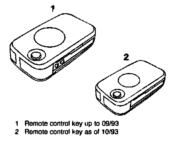 As of 10/93 the size of the remote control key has been reduced by approximately 40%. The mechanical key shank of a remote control key up to 09/93 cannot be replaced by a remote control key as of 10/93.