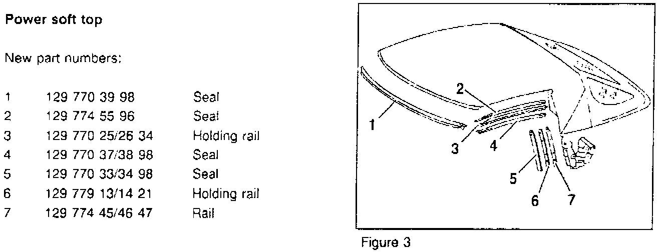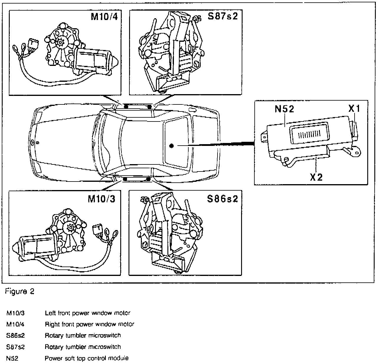 As of December 1994, a modified power soft top control module (N52) has been phased into production. The new control module has the window lowering (short-stroke) feature as in model 140 coupe.