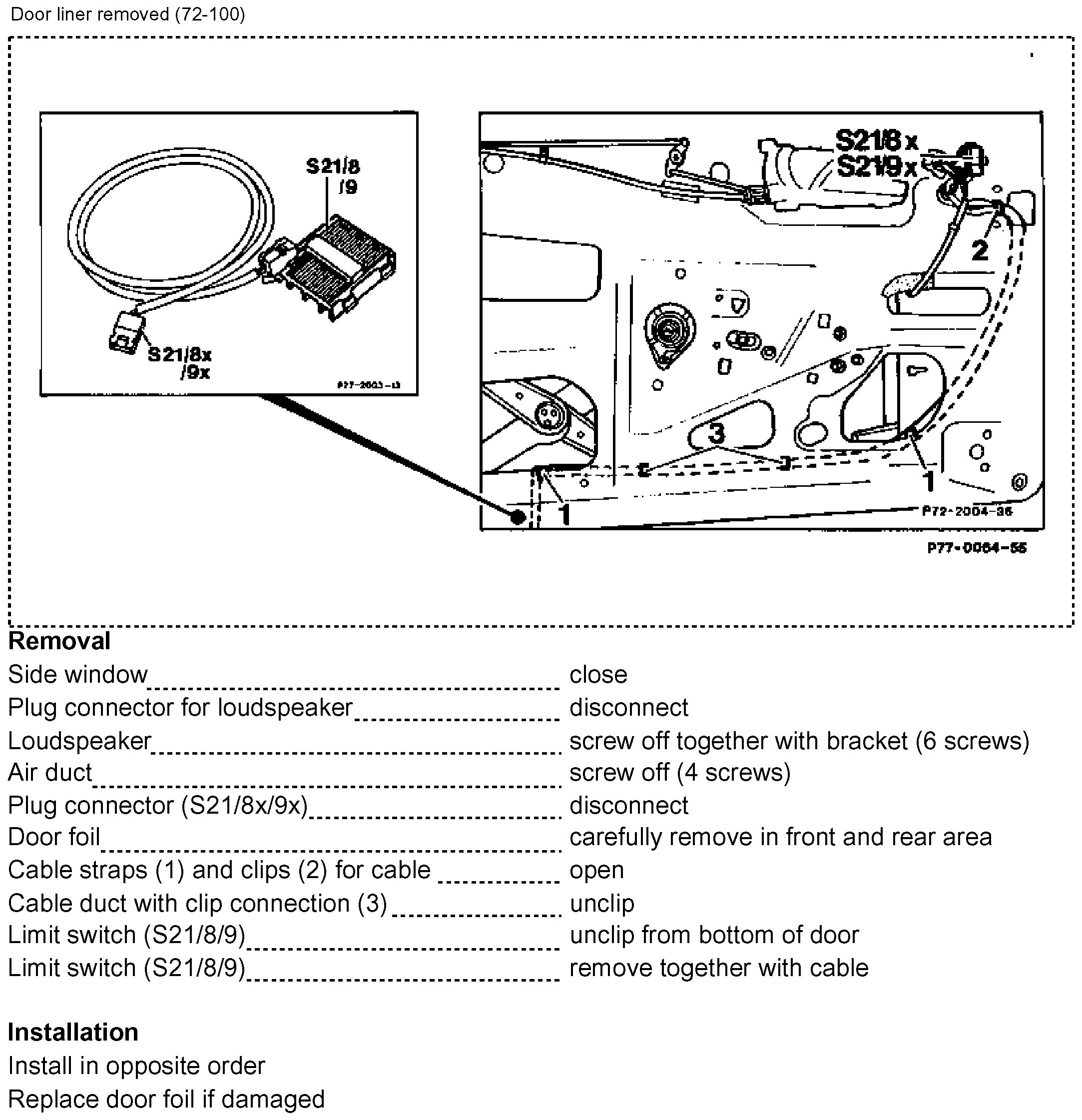 77-410 Removal And Installation Of Limit Switch, Side Window Down