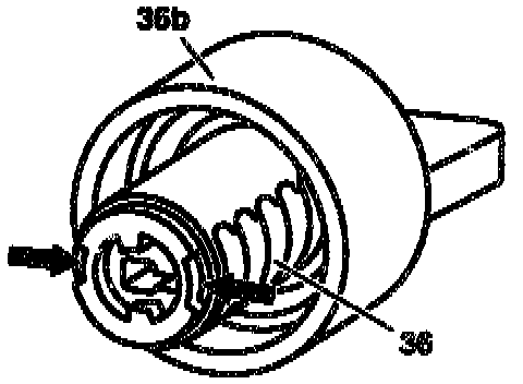 4. Unlock the lock cylinder by turning the cap (36b) 90° and remove.