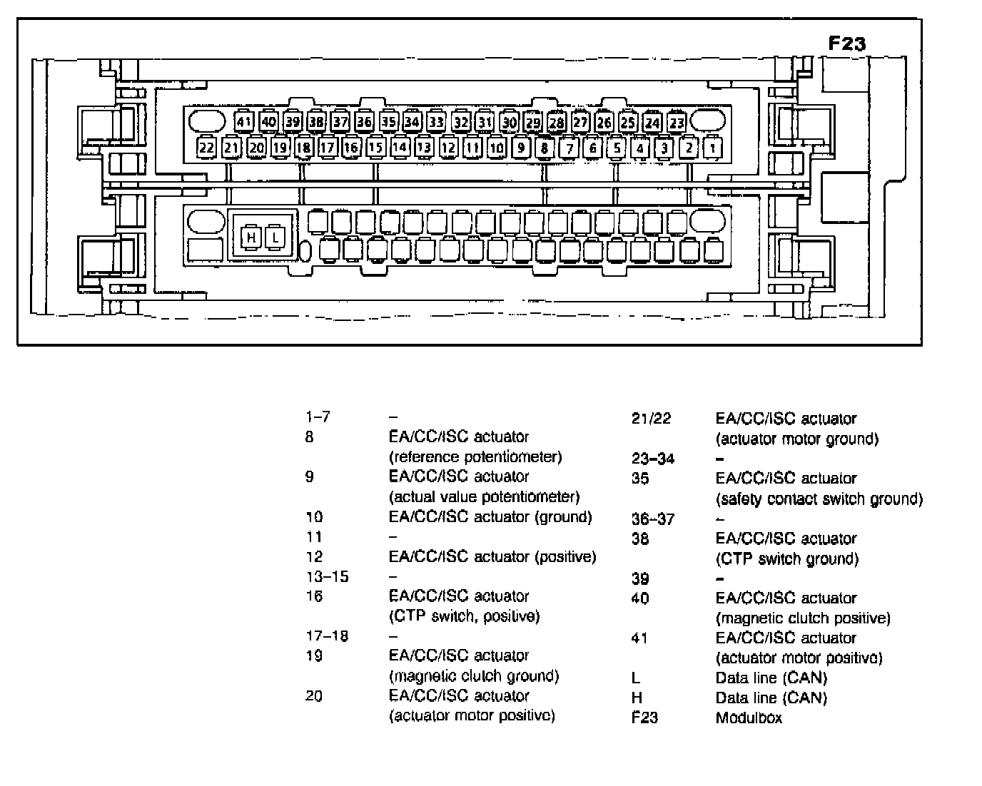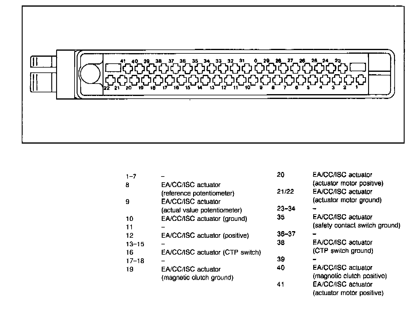 Connector Pin-out Views of EA/CC/ISC Control Module Connectors