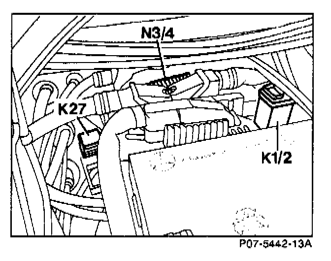 The engine control module (N3/4) is located in the component compartment. Voltage is supplied from the overvoltage protection relay (K1/2). The control module receives engine operating data from sensors and controls the injectors and ignition.