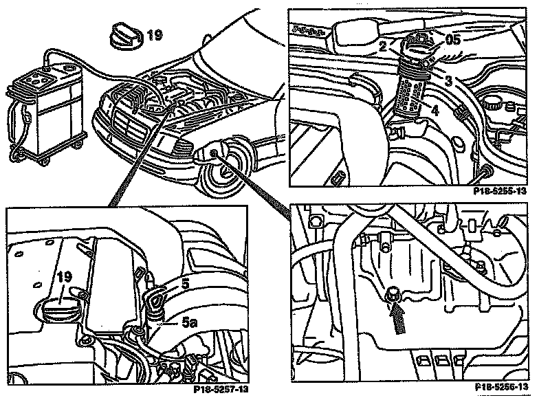 5. Extract engine oil through dipstick guide tube (5a) when engine at operating temperature.