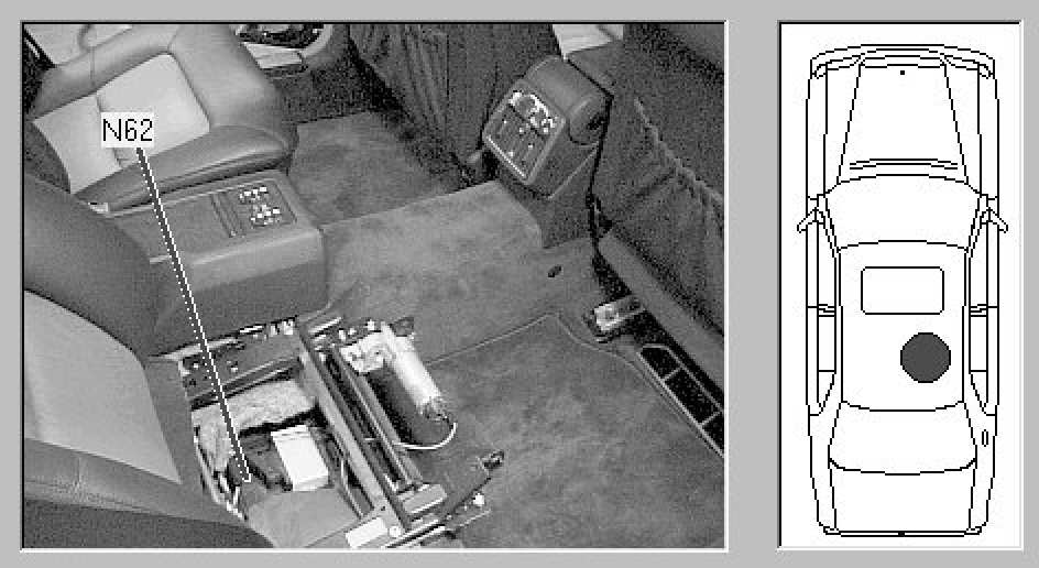 Passenger compartment, beneath RR seat cushion, beneath N51 control module (not visible in photo).