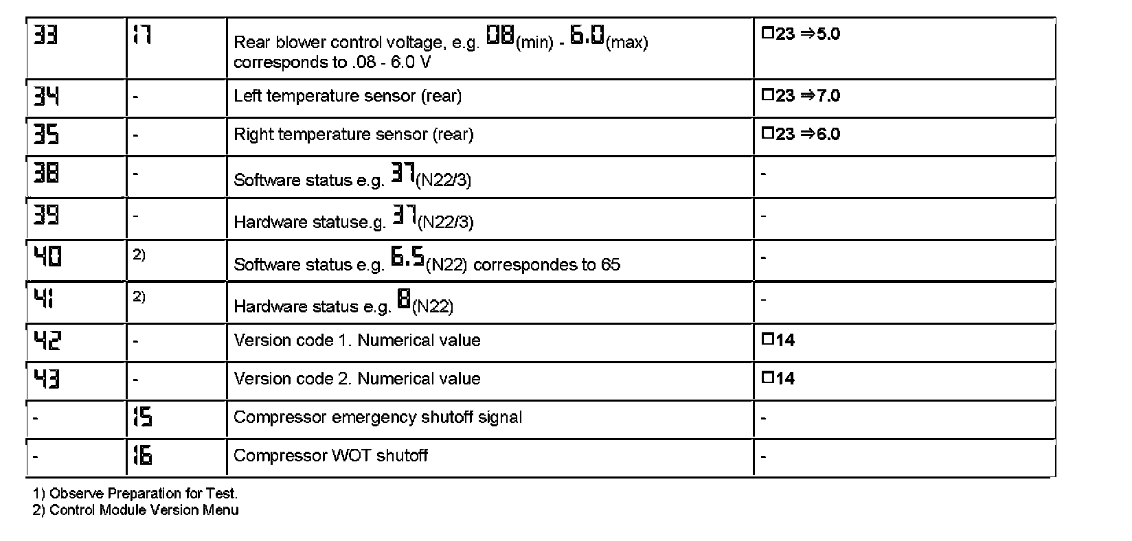 Reading Actual Values (via A/C Pushbutton Control Module [N22])