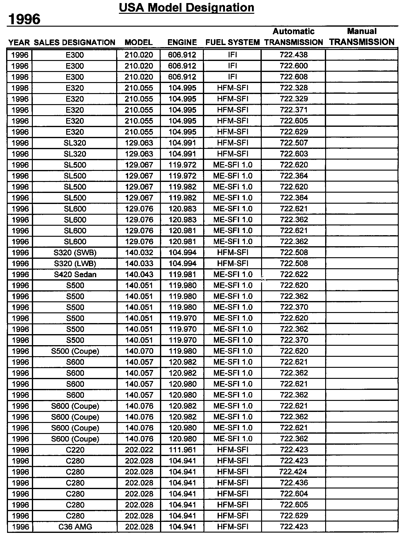Vehicle Designation Sheet 1996 (1 Of 2):