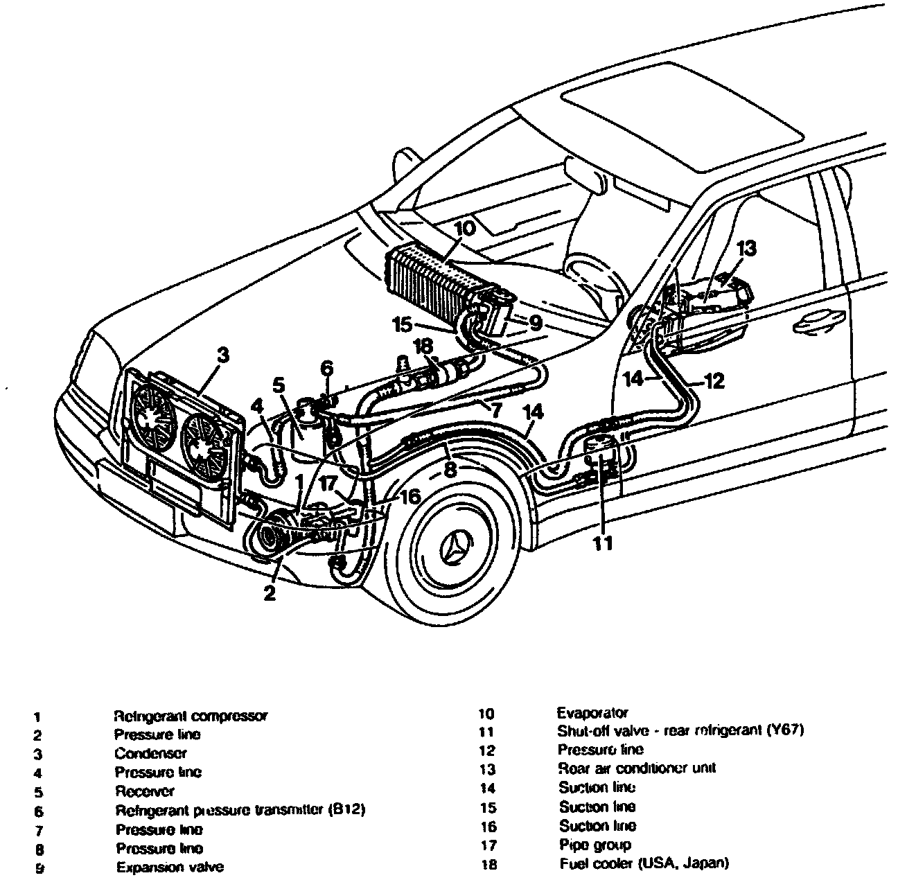 5. In the event of refrigerant loss or suspected leaks in the system, the correct capacity is only ensured after completely emptying (recycling) and refilling the system, after checking the system for leaks. A correct capacity can only be achieved by weighing the refrigerant or by the use of a filling cylinder or automatic air conditioner filling equipment. Note the latest information concerning correct capacity.