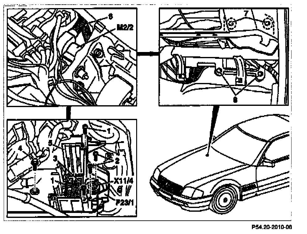 14. Carefully guide disconnected cables and wiring harnesses out of control module box housing (F23/1).