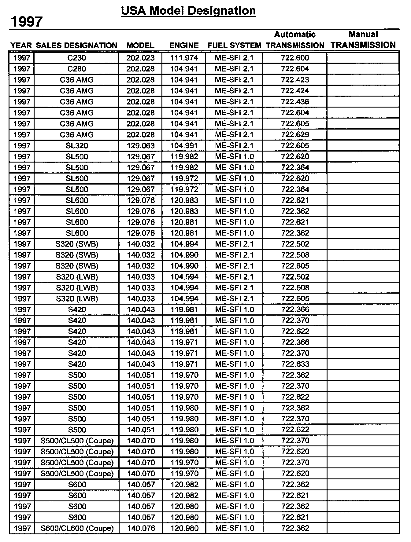 Vehicle Designation Sheet 1997 (2 Of 2):