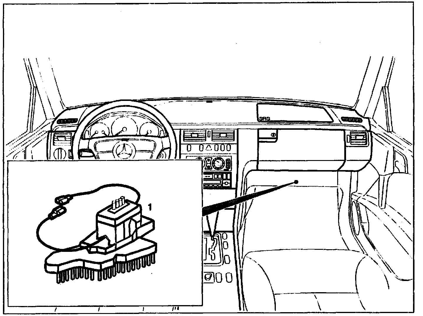 The blower regulator (1) is located below the glove compartment and is screwed onto the blower.