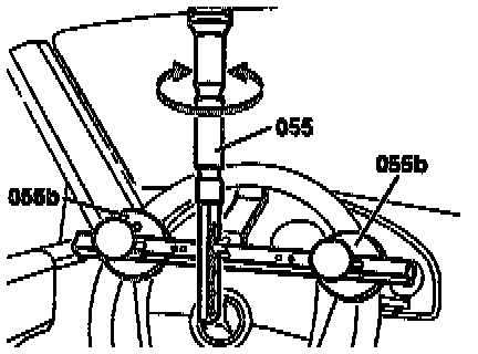 1. Using holding device (055) tool No. 129 589 01 21 00, or equivalent, fix steering wheel in center position.