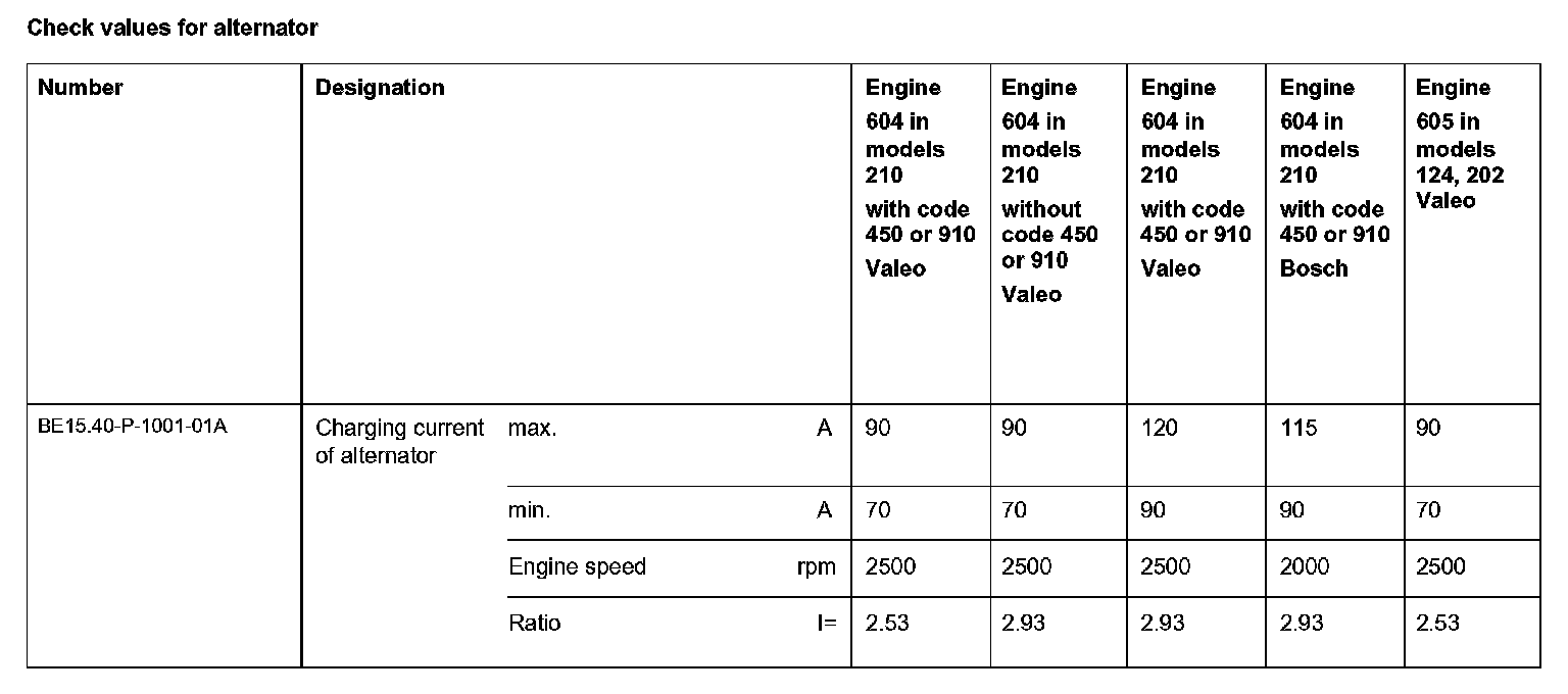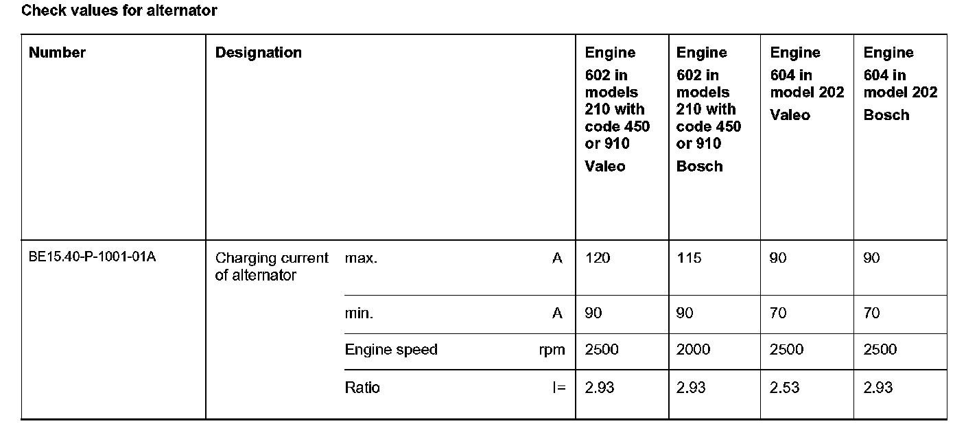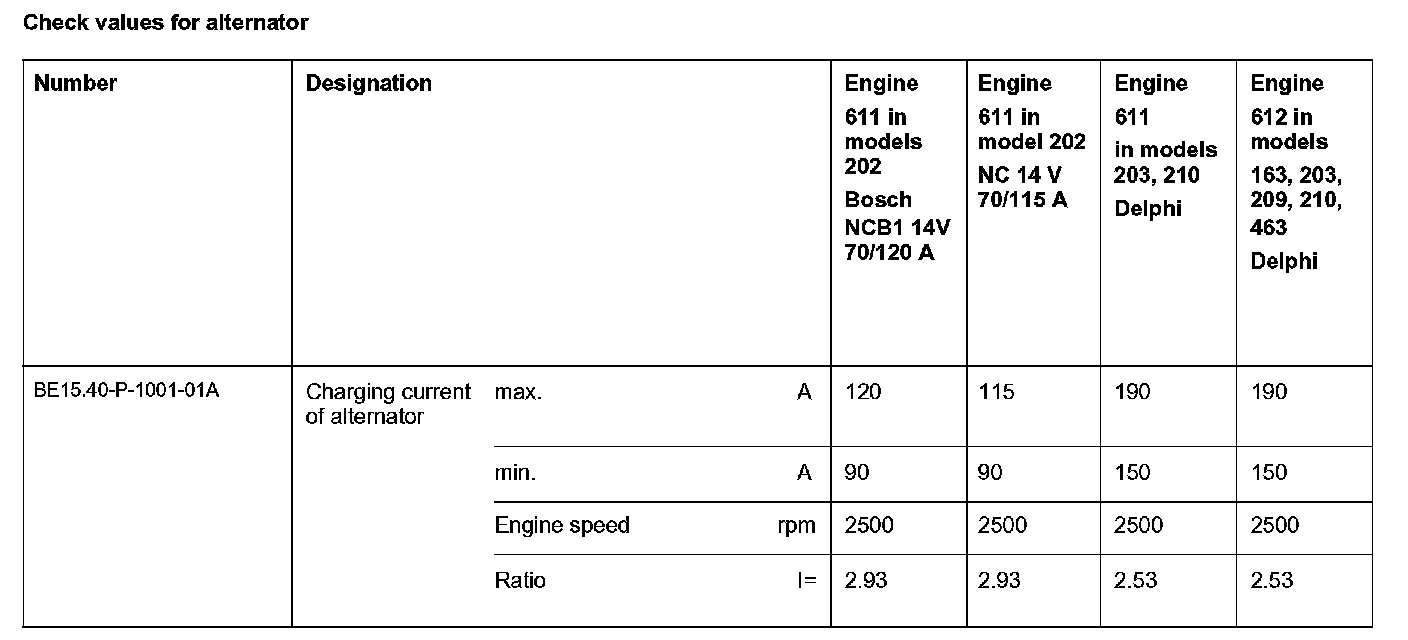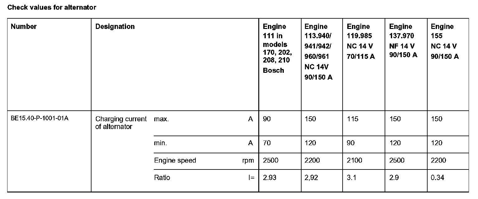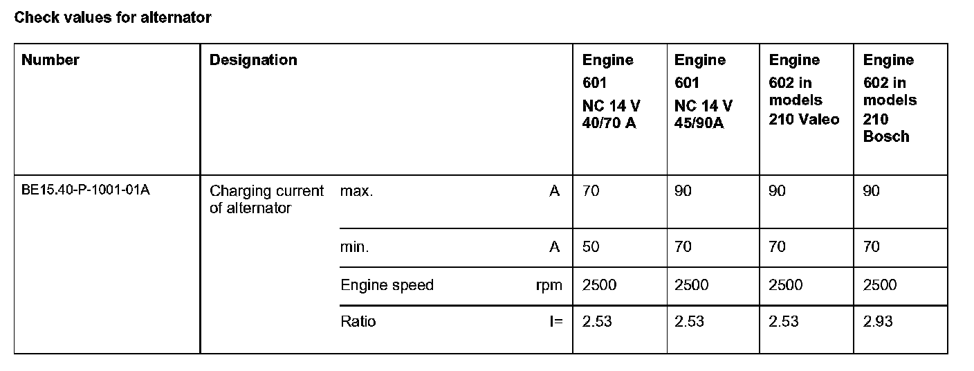 BE15.40-P-1000-01A Check values for alternatorModification notes: