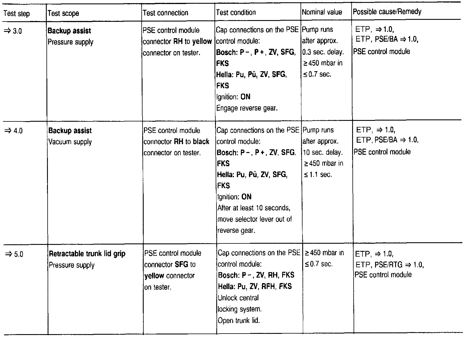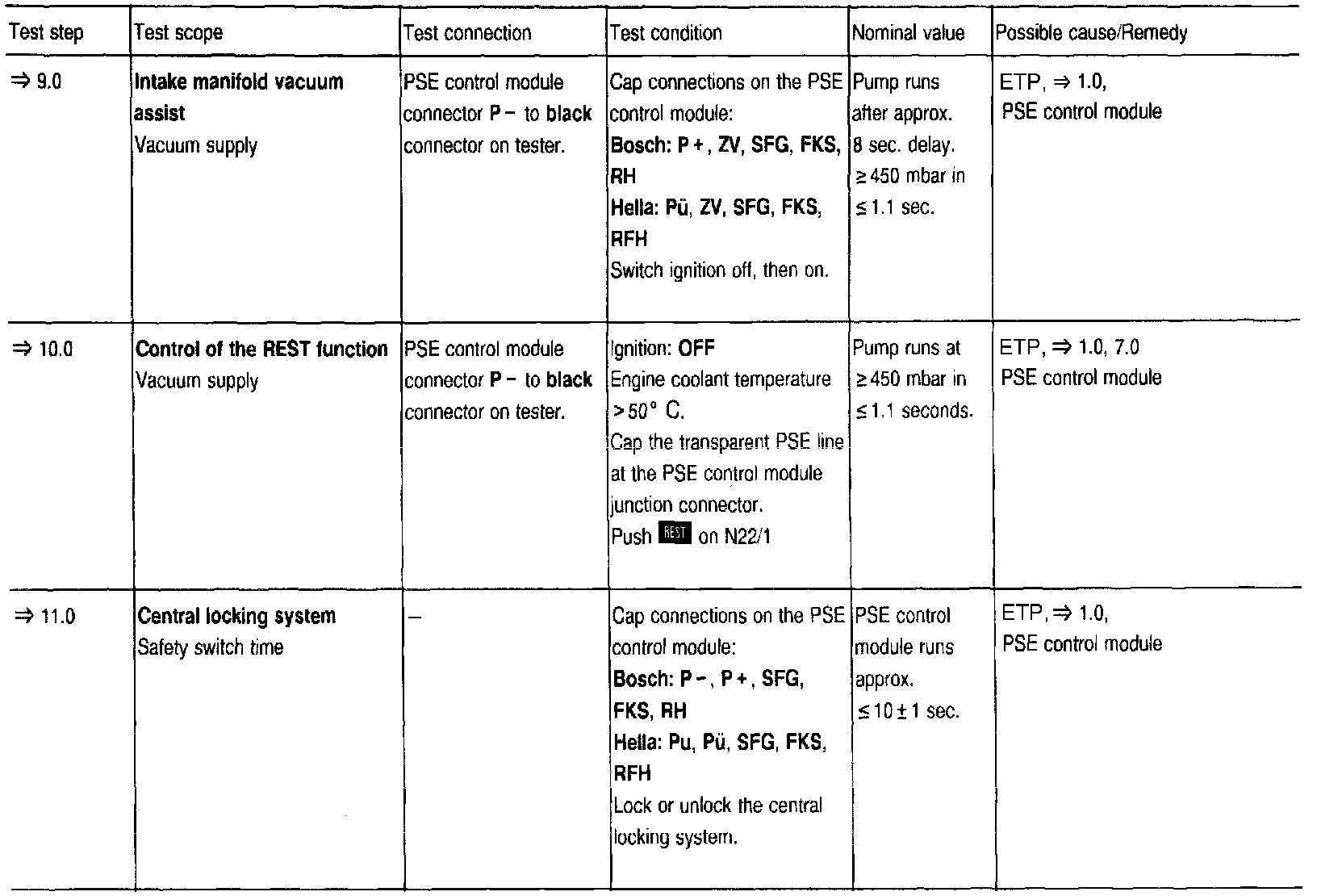3. After completing the PSE control module test, do not operate any system which would require vacuum or pressure supply for approx. 10 minutes.