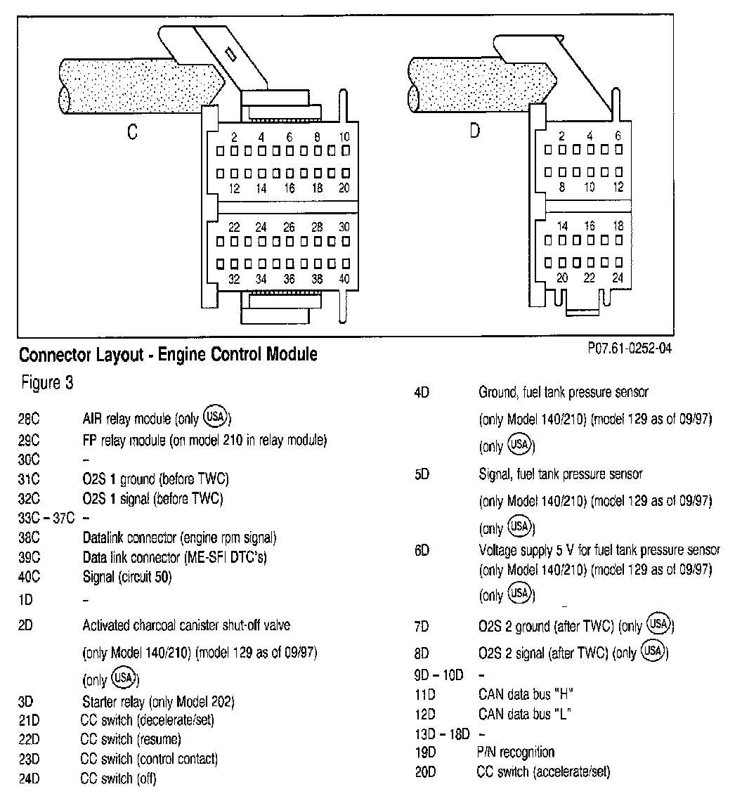 IMPORTANT: Connector with red marking is not required at this time since the engine control module has presently no function installed for it.