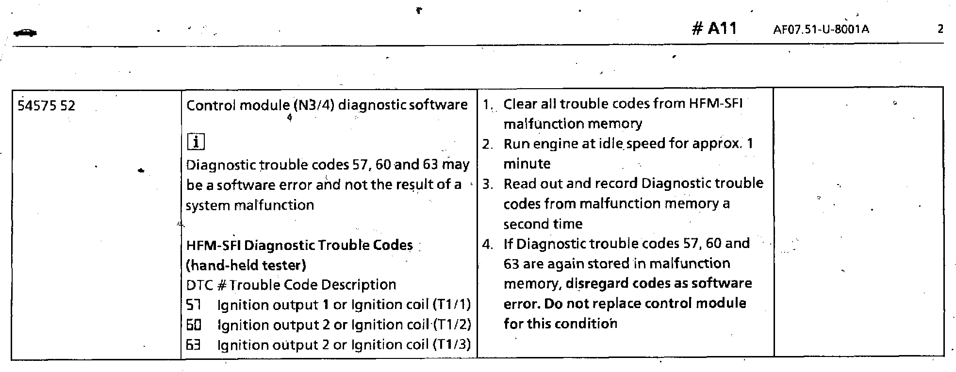 DTCs 57/60/63 Control Module Memory Malfunction
