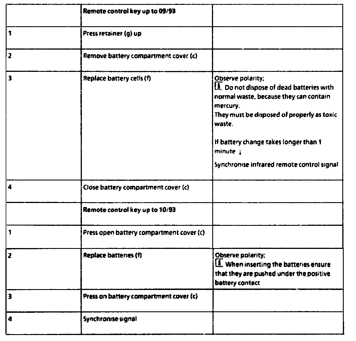 Remote control key up to 09/93