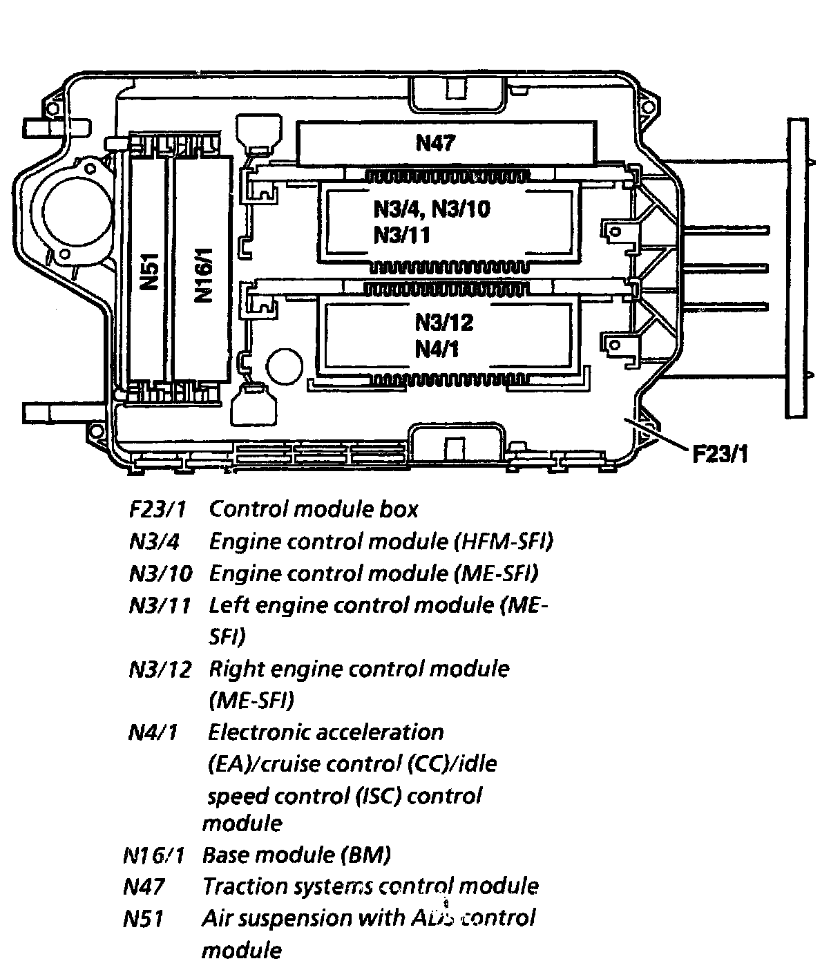 NOTE: On model 129 up to 31.8.95 all control modules and couplings in the module box are fitted with a mis-plug protection. In addition the control modules are identified by color markings which are identical to the colors of the coupling housing. Some control modules have two multipoint connectors. The coupling for the second multipoint connector is a darker shade than the marking on the control module.