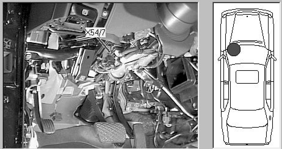 Passenger compartment, upper center of Driver's footwell, behind dashboard, to left of steering column.
