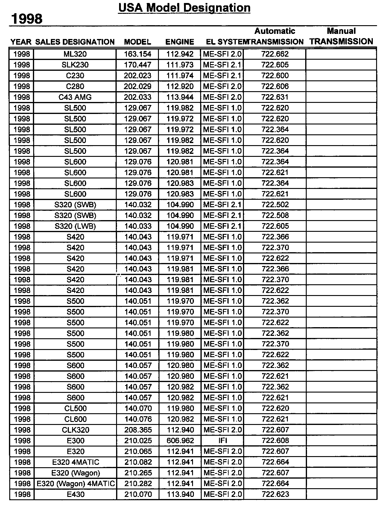 SL 500 (129.067) V8-5.0L (119.982)