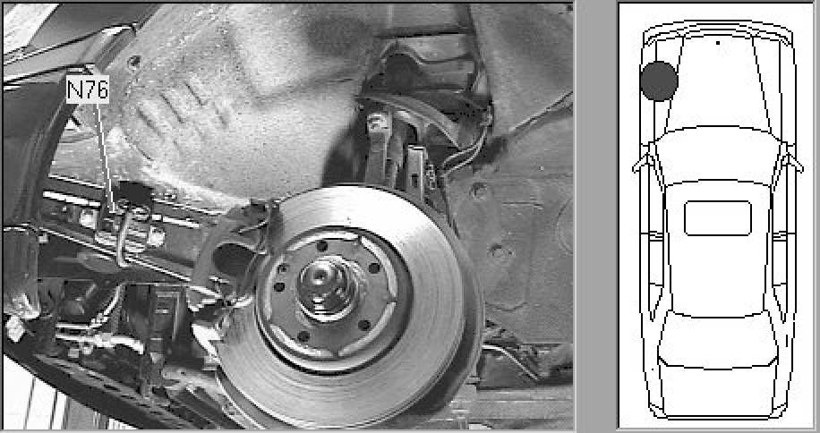 Left front wheel well, on frame rail
